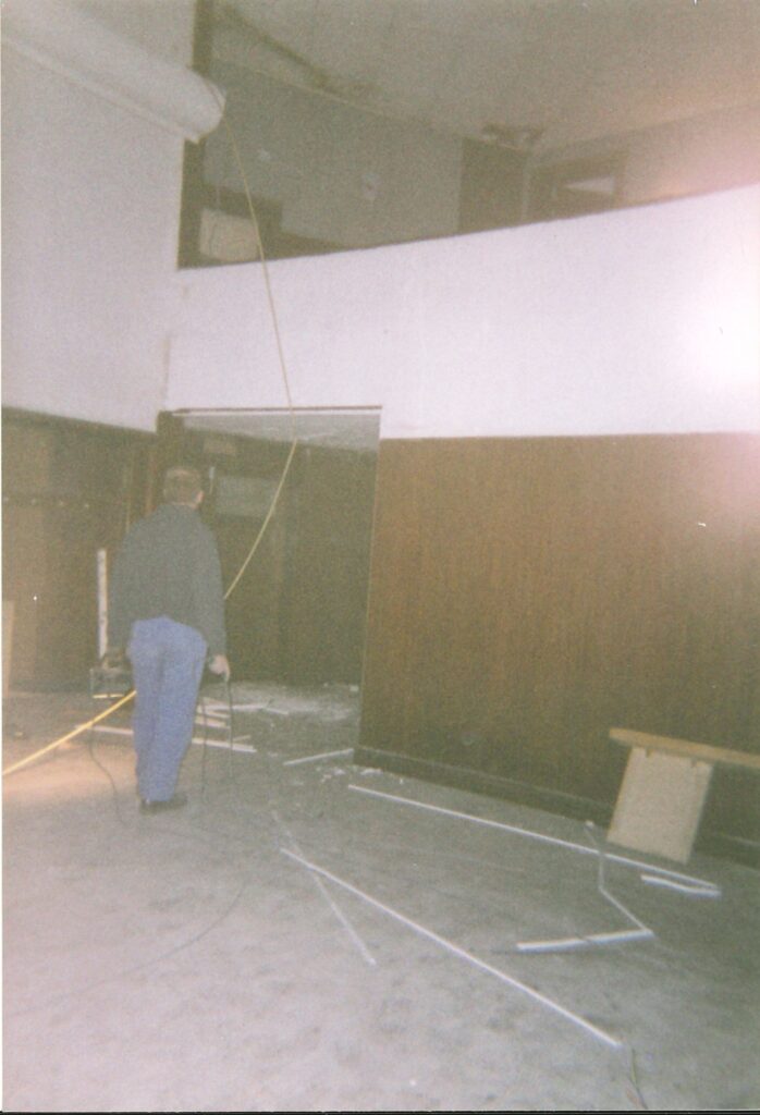 Marie-Christine : Oui, et puis la commune a eu l’opportunité d’acheter le bâtiment du cinéma. A partir de ce moment-là, il y a eu un certain temps où on ne savait pas ce qu’on allait y faire. Et puis ils ont décidé d’y mettre la bibliothèque et de faire les travaux.
