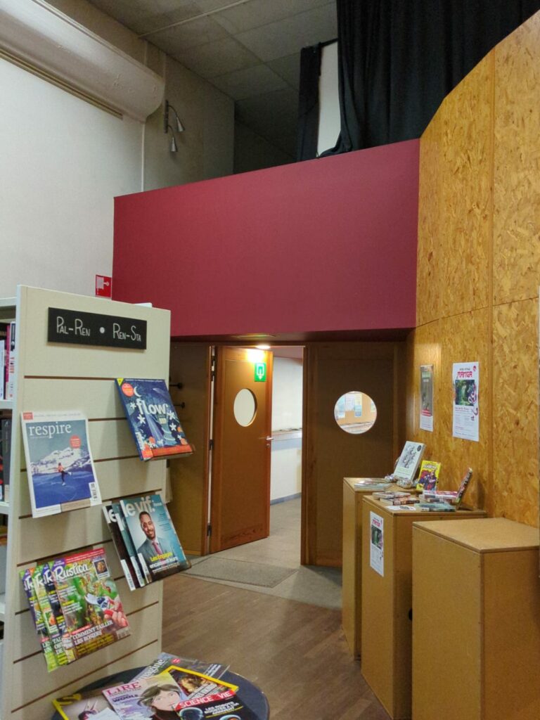 Marie-Claude : C’était un souhait de Jacques Gennen, qui était à l’époque bourgmestre et président du CA. Il voulait que le lieu soit polyvalent comme, il n’y avait pas de centre culturel à Vielsalm, ni de salle, il voulait que la bibliothèque puisse aussi servir à ça. Donc les rayonnages sur roulette, par exemple, c’était un prérequis. Et à l’époque on n’en parlait pas trop à la Communauté française parce qu’eux n’étaient pas encore dans cet esprit-là. Les bibliothèques ne pouvaient pas encore faire plein d’autres activités. Maintenant toutes les bibliothèques proposent des tas de choses, mais nous le faisions déjà.