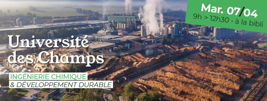 Après les conférences de ce mardi 24 mars sur « Communication environnementale et analyse du cycle de vie » et « Les polluants éternels : mythe ou réalité ? », nous vous donnons rendez-vous le 07 avril pour la suite de notre « Université des Champs » consacrée à l’ingénierie chimique et son rôle dans le développement durable.