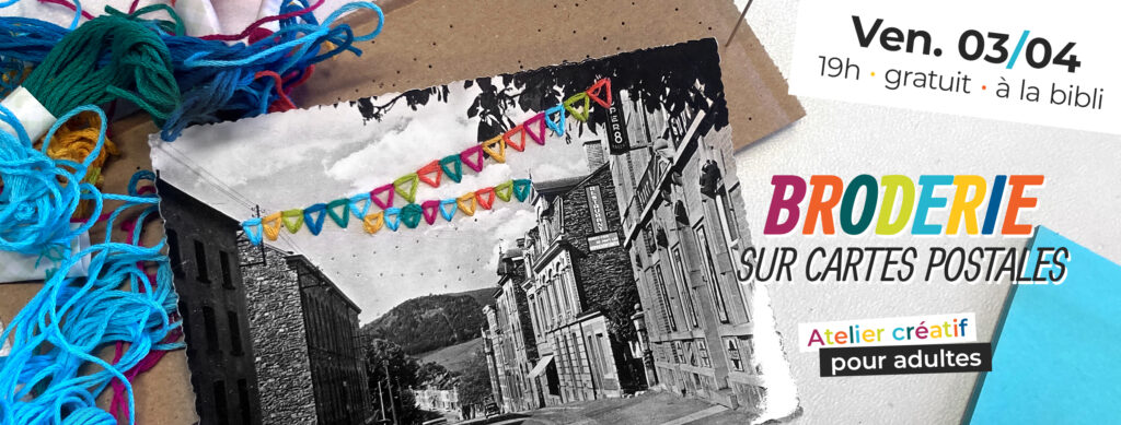 Le vendredi 3 avril à 19h, Manon vous propose un atelier « broderie sur d’anciennes cartes postales » de la Racinothèque.